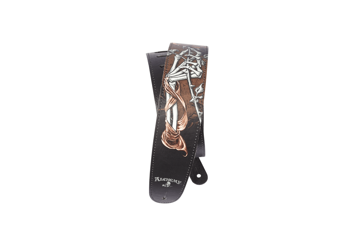Виготовлена в майстернях у Лестері, Англія, Alchemy Gothic зібрала неймовірну колекцію автентичного готичного мистецтва, міфології та фентезі. Це дивовижне мистецтво тепер представлене у цій офіційно ліцензованій колекції гітарних ременів.