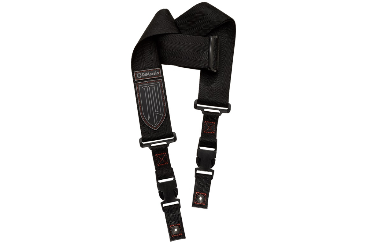 Ремінь виготовлений з чорного нейлону шириною 2 дюйми з логотипом JP, пришитим до нижньої передньої частини, прямо над міцним зажимом і втулкою, яка кріпиться до вашої гітарі. Ремінь доступний червоною строчкою.