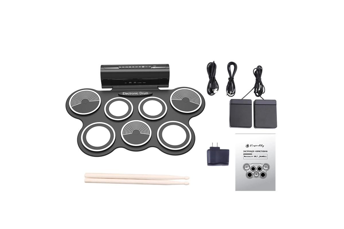 Гнучка ударна установка Musicality DRL7 DrumRoll — це портативний електронний барабанний комплект, який поєднує компактність, багатофункціональність і сучасні можливості для навчання та гри. Вона підійде як для дітей і новачків, так і для досвідчених музикантів, що цінують мобільність та універсальність.
