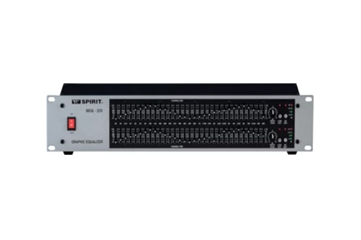 Багатофункціональний графічний еквалайзер SPIRIT SEQ-231 має 2 канали по 31 смугу з індикатором рівня, балансом вхідного і вихідного сигналу, НЧ. Фільтр з глибоким вирізом, щоб захистити низькі частоти від перевантаження і це зручно, щоб порівняти ефекти PRE EQ з POST EQ за допомогою кнопки байпаса.