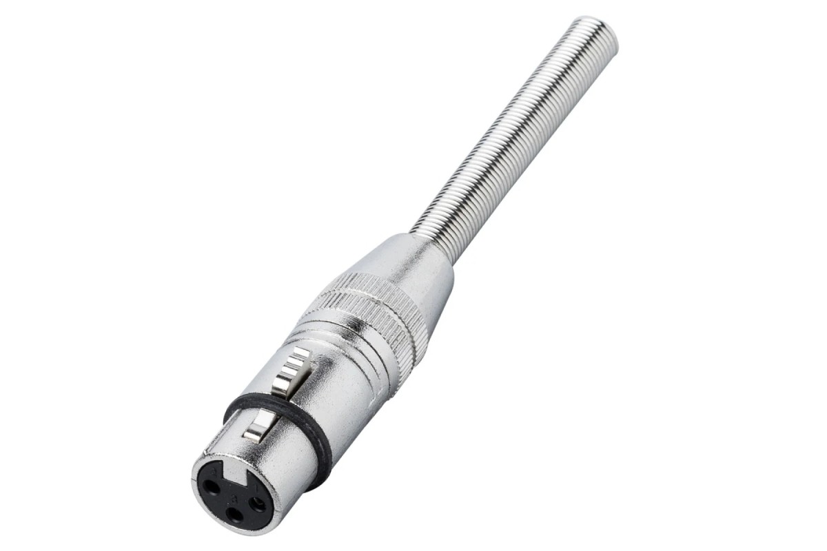 Роз'єм канон професійний 3-піновий "мама", симетричний, металевий, з надзвичайно довгим пружинним кабельним провідником.