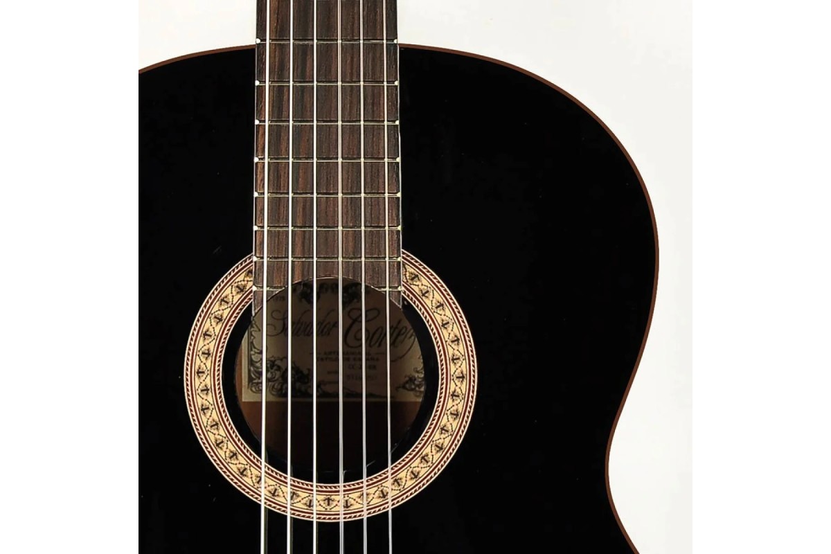 Salvador Cortez CC-22-BK з топом із масиву кедра є ідеальною першою гітарою. Цей інструмент має теплий округлий тон із багатими обертонами. Кедровий топ забезпечує швидкий відгук та легке звучання, тому цей матеріал є популярним вибором. Обичайки та задня дека виконані із сапелі, який за своїми звуковими характеристиками нагадує червоне дерево. Ця модель має рідкісний, як для класичних гітар, чорний колір, що надає їй елегантного вигляду.