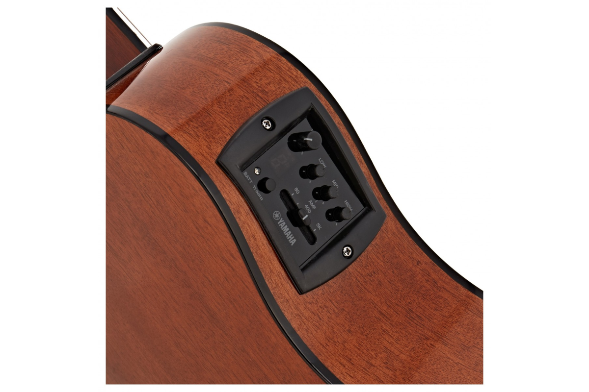 Для зручного доступу регулятори вбудованого п'єзоелектричного датчика розташовані на верхній стороні обичайки інструменту. Відсік для батарей розташований з тієї ж сторони поруч з грифом для більш зручної їх заміни. Унікальний розроблений компанією Yamaha, п'єзоелектричний звукознімач традиційно розташований під нижнім порожком. На панелі розташовані регулятори управління 3-смуговим еквалайзером (з параметричною серединою) і хроматичний тюнер для найбільш точного налаштування. Харчування системи забезпечується пальчиковими батареями АА, що дозволяє зберігати оптимальну потужність для якісного звучання.