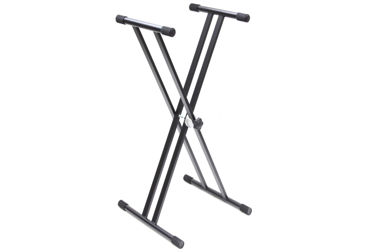 Подвійна клавішна стійка DJ Lights — міцна та надійна конструкція для розміщення синтезаторів, MIDI-клавіатур та інших клавішних інструментів. Завдяки посиленій Х-подібній формі забезпечує більшу стійкість та витримує вагу важчих інструментів. Зручна система фіксації дозволяє швидко регулювати висоту й складати стійку для транспортування.