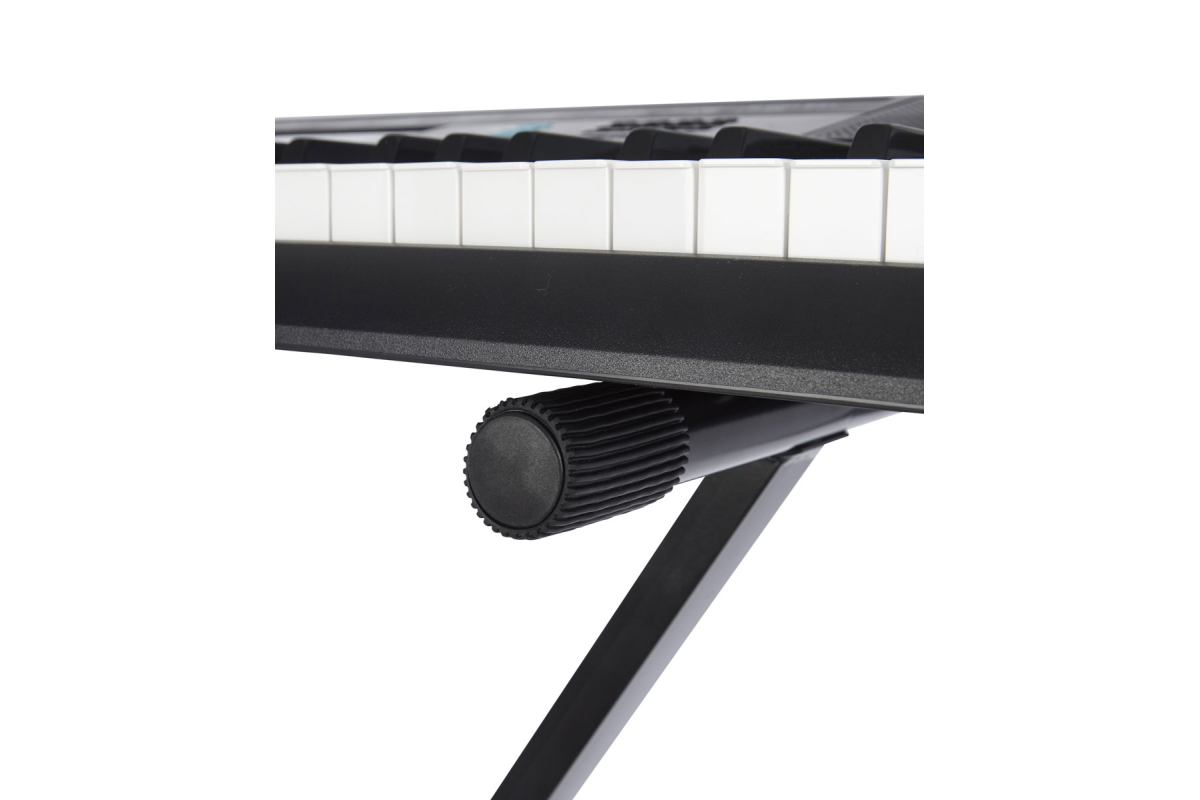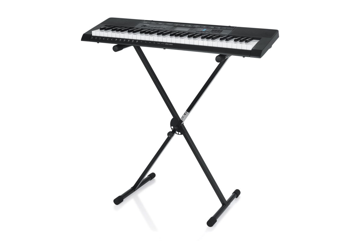 GATOR FRAMEWORKS RI-KEYX-1 — надійна та зручна клавішна стійка типу “X”, розроблена для комфортної гри та стабільної фіксації інструмента. Металева конструкція з чорним порошковим покриттям забезпечує довговічність та стильний вигляд. Прогумована поверхня тримача захищає клавіатуру від ковзання та подряпин, а гумові ніжки гарантують стійкість на будь-якій поверхні.