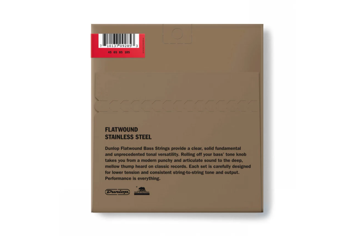 Бас-гітарні струни Dunlop Flatwound Bass Strings увібрали в себе всю чуттєвість тієї епохи. Вони відрізняються щільним, чистим звучанням і чудовою тональною універсальністю. Простим поворотом ручки тону на інструменті звук вашого баса перетворюється з сучасного яскравого і артикульованого в м'який глибокий і демпфований - той самий, завдяки якому струни з плоскою обмоткою і придбали свою популярність. Набір ретельно підібраний по товщині для того, щоб зменшити натяг і забезпечити однорідне, щільне звучання кожної струни в комплекті.