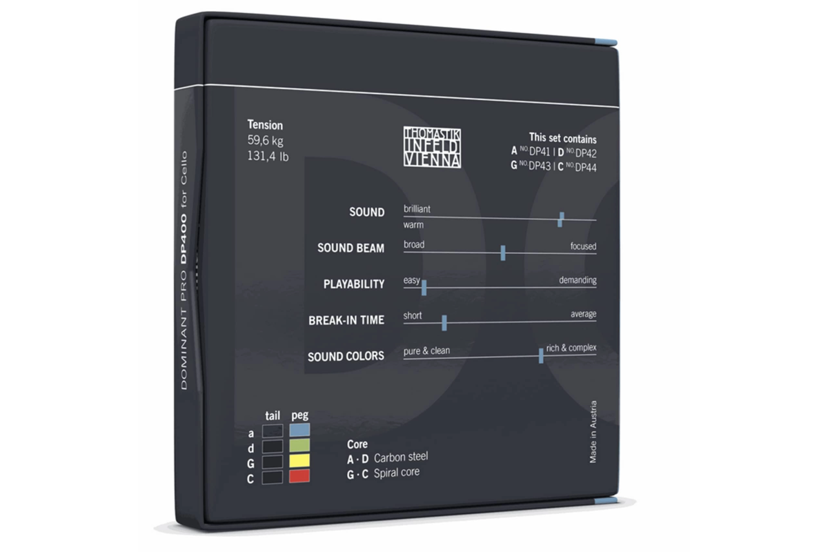 Комплект струн Thomastik Dominant Pro 4/4 для віолончелі призначений для професійних музикантів. Струни мають середній натяг (Medium) і забезпечують чисте, насичене звучання з відмінною інтонаційною стабільністю. Виготовлені зі сталі та обмотані хромом, нікелевим сплавом або вольфрамом залежно від струни, що гарантує тривалий термін служби та рівномірний тембр на всіх нотах.