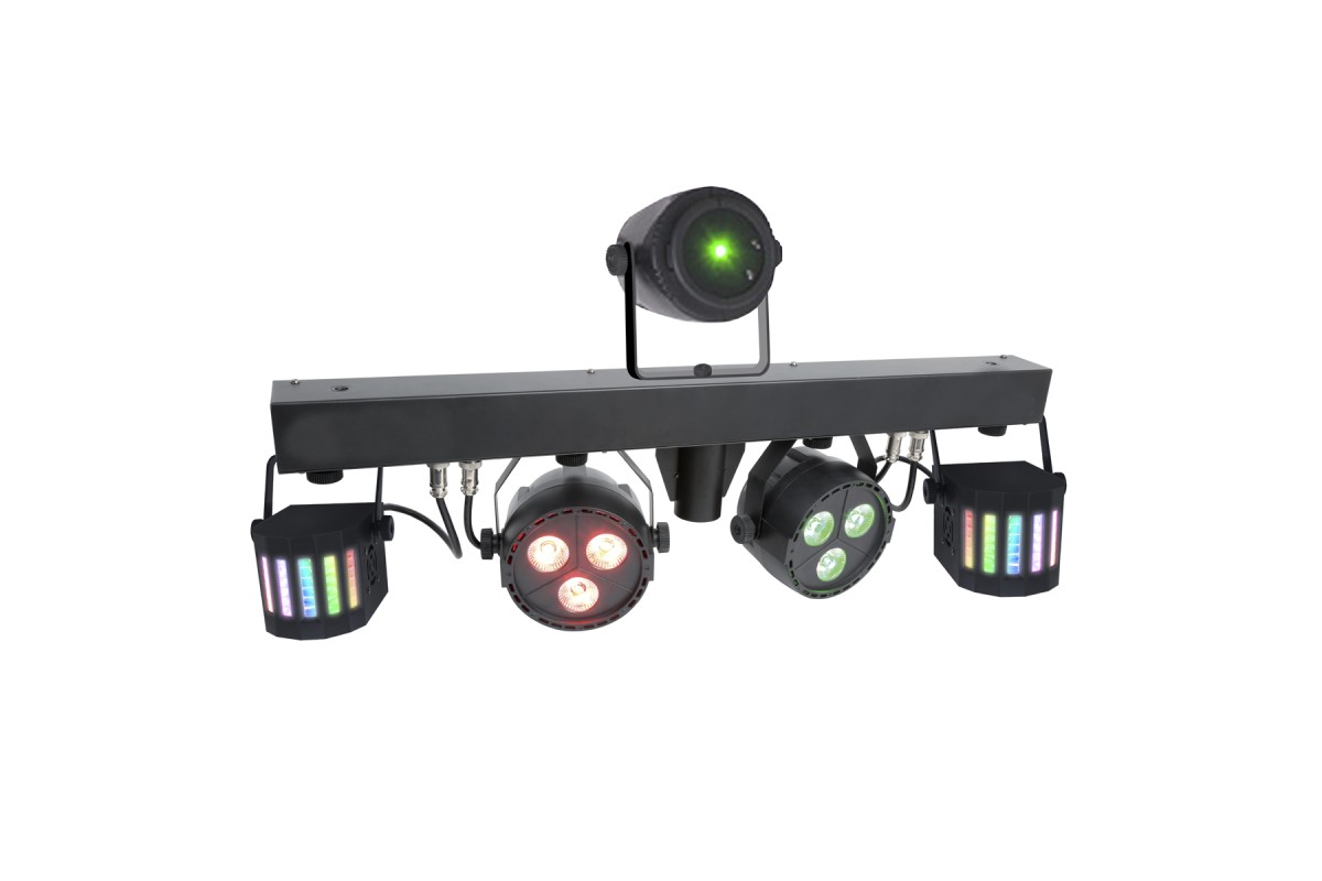 BIG SET PAR + DERBY + LASER — готовий мобільний комплект сценічного освітлення для шоу, клубів та концертів. Набір дозволяє швидко та зручно встановлювати світлові прилади, створюючи яскраві заливки та динамічні світлові ефекти.