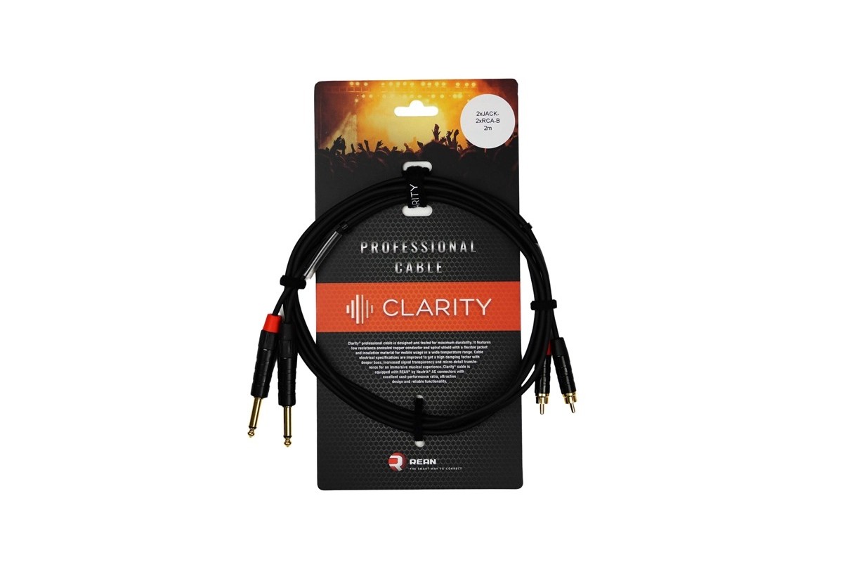 Готовий комутаційний кабель 0.22 mm2 / AWG 24, з мідною спіральною опліткою 28 x 0.10 mm і гнучкою оболонкою PVC. Роз'єми REAN® by Neutrik® 2xJACK - 2xRCA, довжина 2м.(REA0-QQR-M1-020).