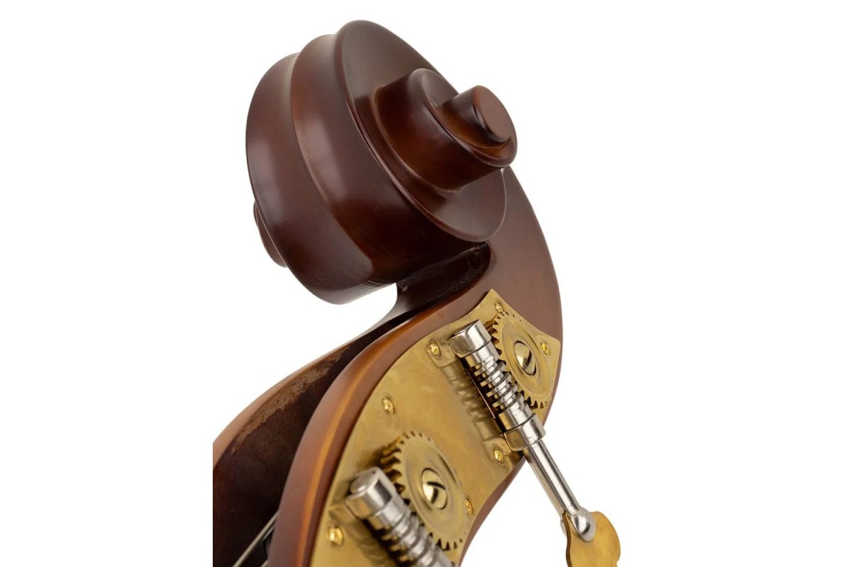 Верхня частина інструмента покрита лаком. Гриф контрабаса виготовлений з клену, що є популярним вибором завдяки своїй міцності та гарному резонансу. Накладка грифа також з клену, що забезпечує комфортну гру і високу стійкість до зношування.