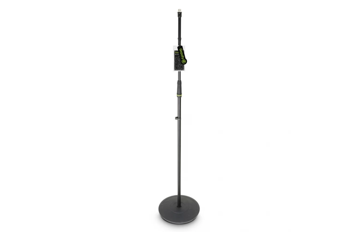 Мікрофонна стійка Gravity MS 23 складається з міцних труб з порошковим покриттям чорного кольору. Максимальна висота 160 см. Доповнює конструкцію важке кругле підставу з чавуну з прогумованим дном для віброізоляції і захисту покриття підлоги.