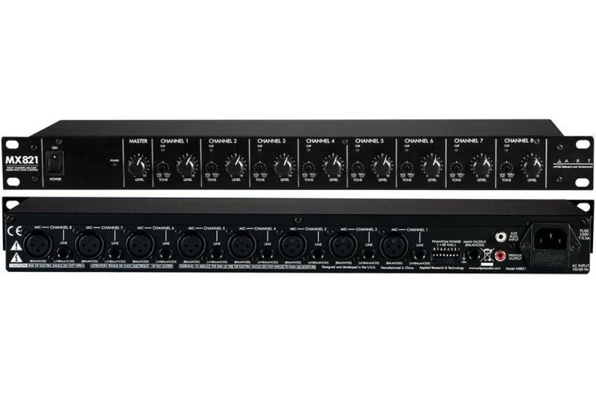 8 каналів mic (XLR) / line (TRS1 / 4 ") з регулюванням рівня сигналу і панорами