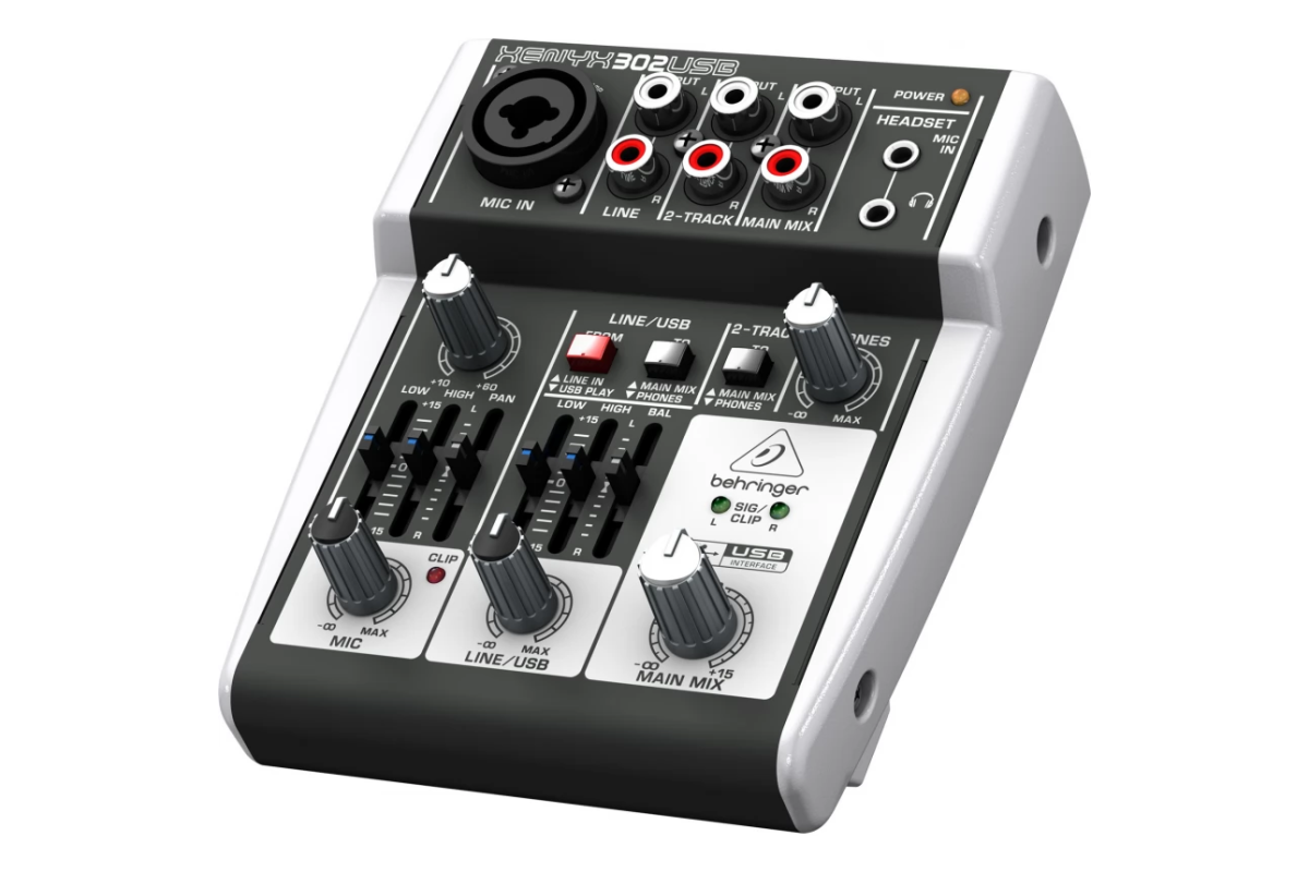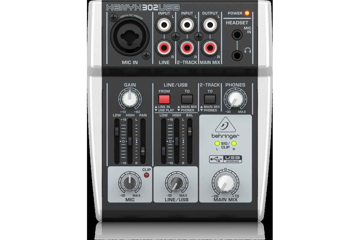 Behringer XENYX 302USB - компактний аналоговий мікшерний пульт з USB-інтерфейсом. Підійде для невеликих домашніх студій, у яких на рахунку кожен сантиметр робочого простору. Пульт має низький рівень шуму, універсальністю і доступною ціною. Оснащений мікрофонним підсилювачем XENYX з фантомним харчуванням. Мікрофонний і лінійний / USB канали з оригінальними неокласичному еквалайзер мають двухтрековий вхід, який може призначатися як на основний мікс, так і на навушники. Харчування здійснюється і від зовнішнього адаптера, і від шини USB. Наявність USB-порту значно розширює можливості використання мікшера. У розпорядженні користувача виявляється програмне забезпечення для редагування записів, а також вражаючий набір плагінів ефектів і VST-інструментів. У комплект входить також USB-кабель.