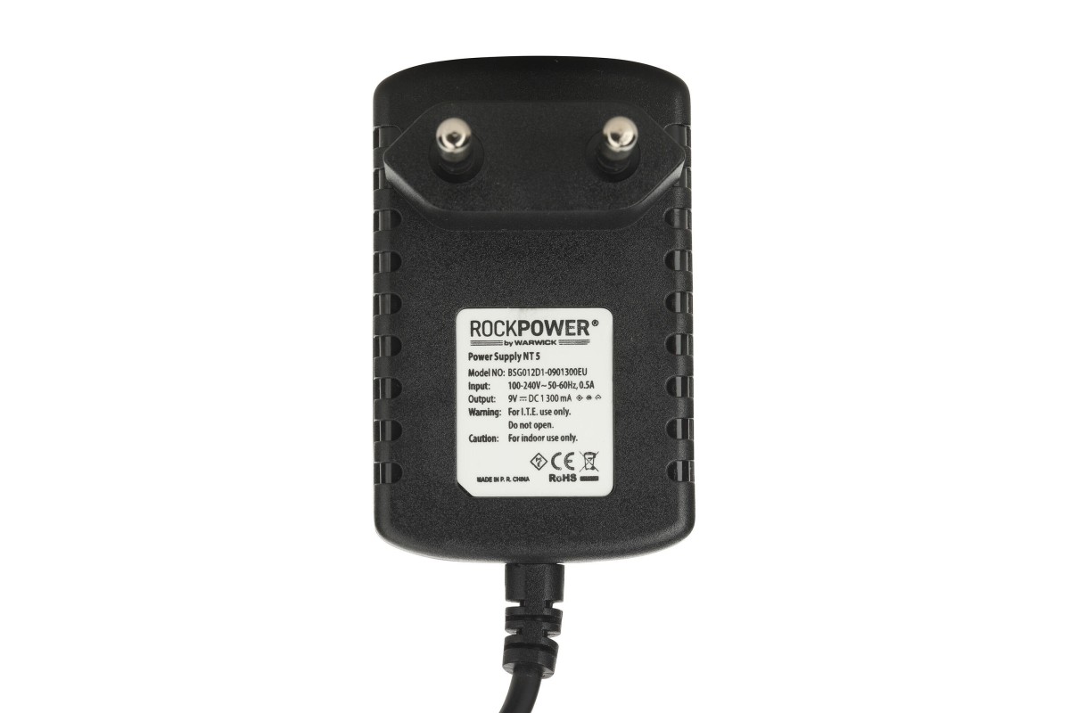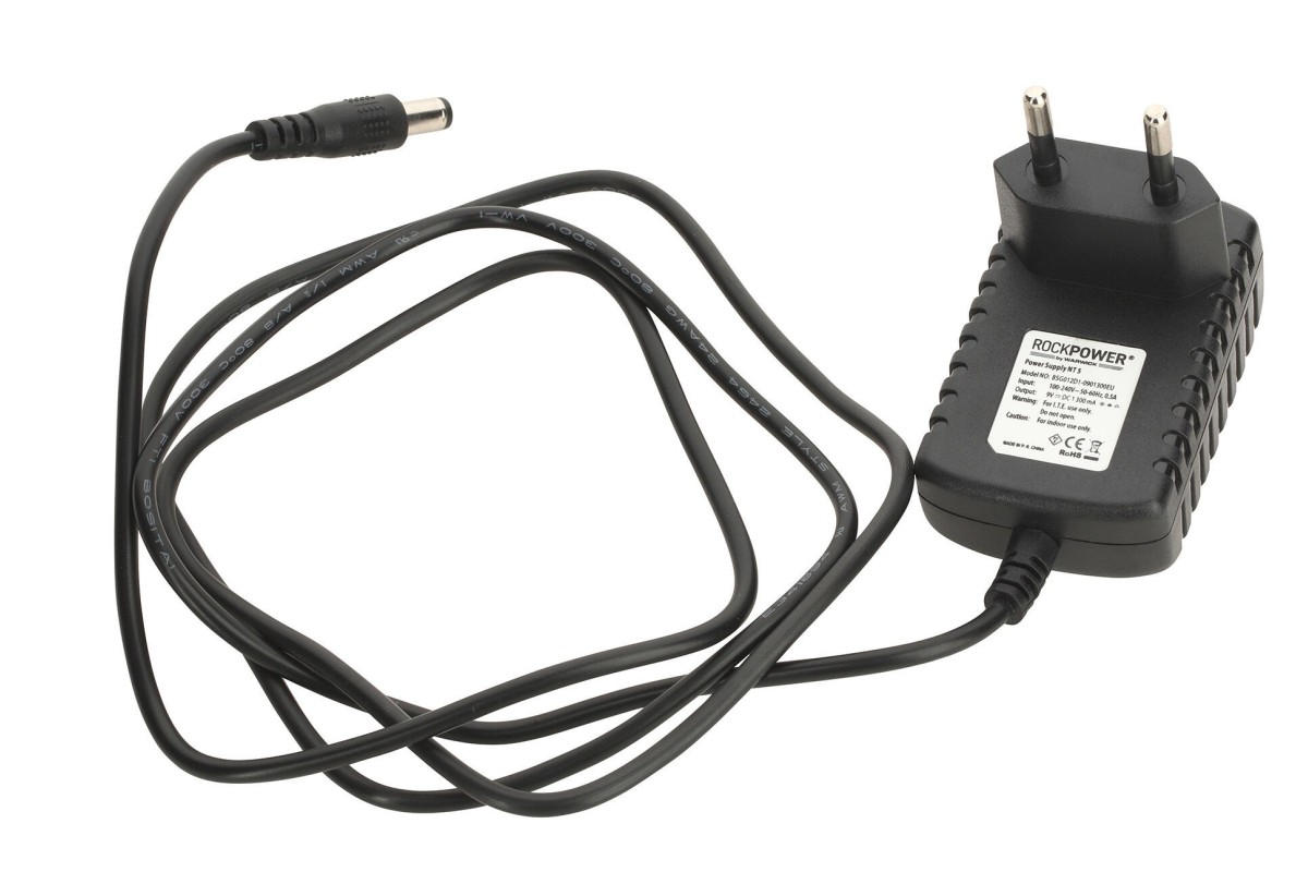 RockPower NT5 забезпечує стабільне живлення педалей ефектів з номіналом 9 В постійного струму. Підходить для більшості педалей завдяки стандартному штекеру 2.1 × 5.5 мм (тип "бочка"). Адаптер підтримує максимальне навантаження 1300 мА і працює в мережах 100–240 В, забезпечуючи надійну та безпечну експлуатацію.