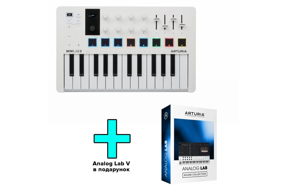 MiniLab 3 - це компактна MIDI-клавіатура та пед-контролер, який дозволяє користувачам створювати музику прямо з коробки. MiniLab 3 з творчим робочим процесом plug-and-play, універсальними елементами керування, що призначаються, 500 підібраними звуками з величезної бібліотеки Analog Lab і комплектом програмного забезпечення для творчості світового класу покликана нарешті допомогти новачкам і професіоналам повністю поринути в музику. творчий потік, незалежно від їхнього стилю. В комплекті є віртуальний ключ до повної версії програмного забезпечення Arturia Analog Lab V.