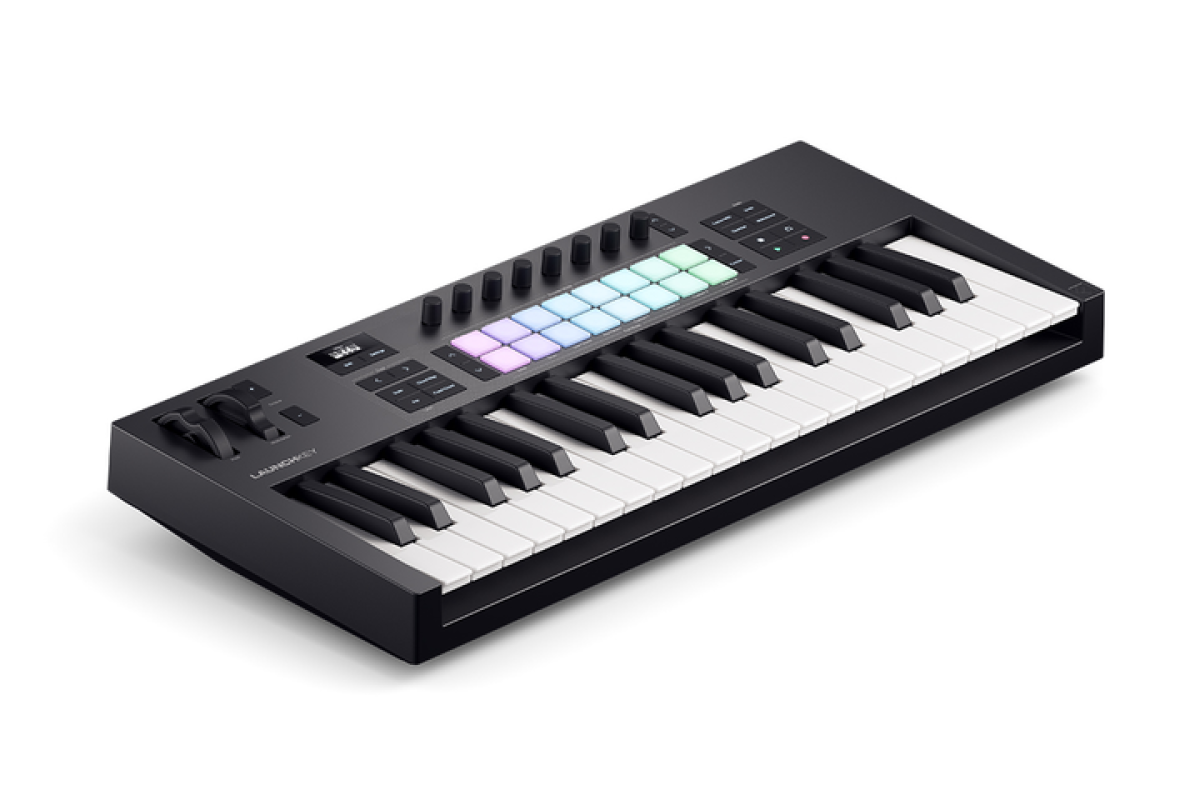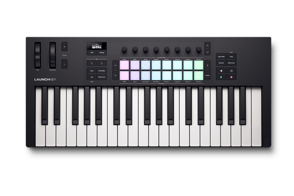 Launchkey 37 – універсальний контролер для DAW, оснащений необхідними інструментами для творчості. Він створений для спрощення вашого творчого процесу та оснащений синтезаторною клавіатурою та 16 чуйними педами з поліфонічним афтертачем. Організована панель управління забезпечує повну інтеграцію з DAW, дозволяючи грати на інструментах та ударних, запускати кліпи та сцени, а також легко керувати мікшером, пристроями та ефектами.