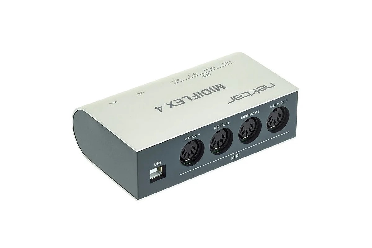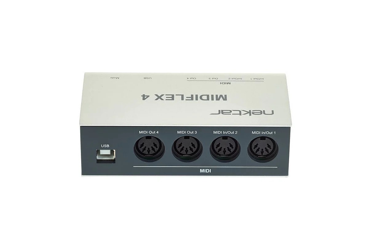 MIDI-інтерфейс Nektar MIDIFLEX 4 забезпечує гнучкі MIDI-підключення до будь-якого налаштування MIDI на MacOS, Windows або iOS. 4 MIDI-порти можна налаштувати як 1 вхід/3 виходи, 2 входи/2 виходи або 4 виходи. Якщо потрібно більше портів, просто підключіть ще один MIDIFLEX 4, щоб розширити можливості MIDI!
