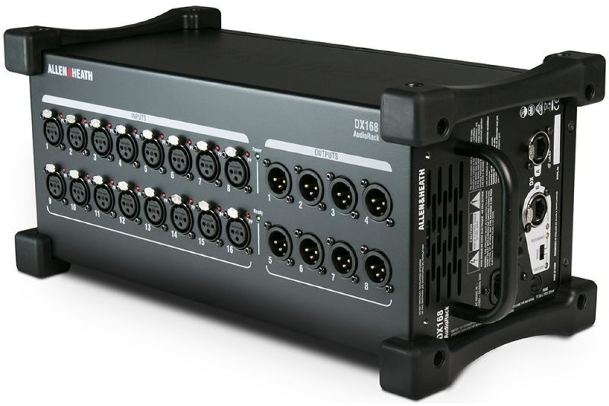 ALLEN & HEATH DX168 виконаний в досить компактному, але міцному корпусі і має зручну ручку для перенесення і знімні гумові бампери. Останні забезпечують додатковий захист блоку, що дозволяє розміщувати його безпосередньо на підлозі сцени. Втім, встановити Allen Heath DX168 якомога та в стандартний 19 ' ' рек за допомогою опціонального набору кріплень.