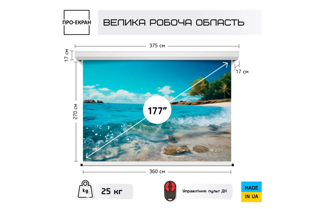 Моторизований екран для проектора на пульті дистанційного керування з діагоналлю 177 дюймів, 360х270 см (4:3)