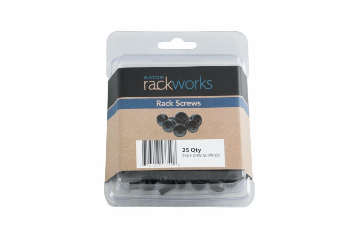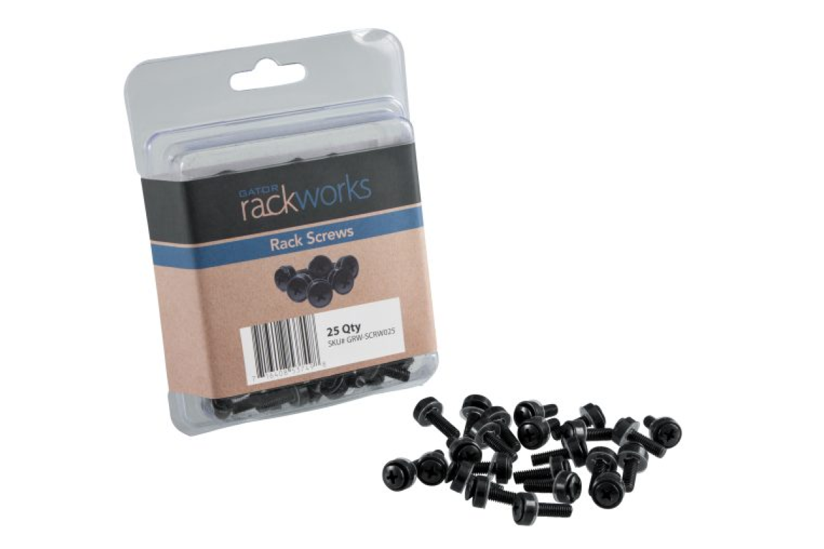 Гвинти Gator Rackworks призначені для рекових стійок, мають довжину 3/4 дюйма з різьбленням 10-32, оснащені хрестовою головкою і включають шайби.