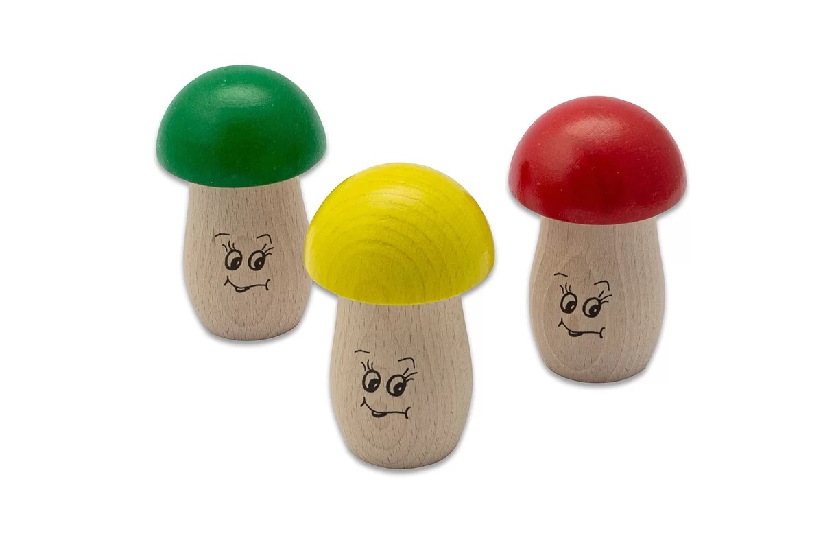 Наші шейкери у формі грибів настільки барвисті та веселі, що змусять усміхнутися кожну дитину. Особливо привертають увагу найменші завдяки своїй круглій формі. Вони хочуть одразу вивчити, що може запропонувати цей інструмент. Різні кольори у поєднанні з контрастними наповнювачами грайливо передають відмінності у звучанні та загострюють усі почуття. У набір входять 3 різних шейкери у вигляді грибів з бука з 3 різними начинками (низький, середній та високий тон). Ручки натуральні, ковпачки покриті лаком, стійким до слини та поту. Наша вікова рекомендація від 3 років.