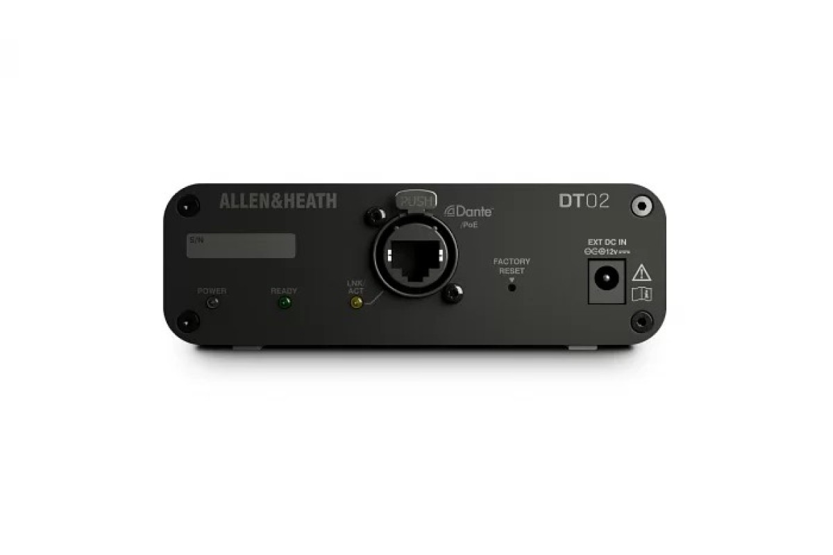 DT02 - це недорогий, компактний інтерфейс Dante 48 кГц/96 кГц, що забезпечує два виходи XLR там, де вони вам потрібні. DT02 ідеально підходить для широкого спектру стаціонарних установок та прокату AV/портативних програм. Його можна використовувати з будь-яким мікшером Allen & Heath, оснащеним Dante інтерфейсом, або системою AHM, а також із системами Dante сторонніх виробників.