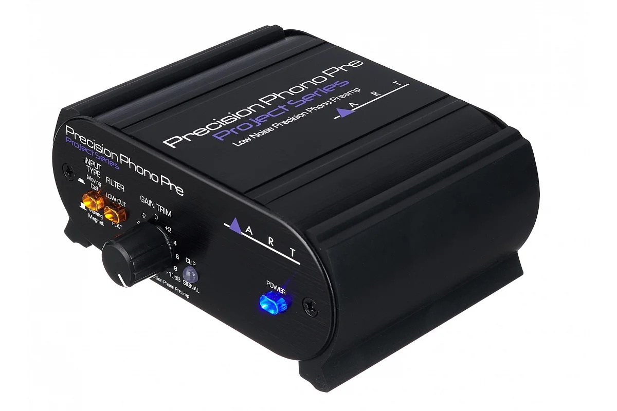 ART з гордістю представляє преамп Precision Phono для підключення вінілового програвача до акустичних систем простим та швидким способом. Інтерфейс автономного Precision Phono Preamp взаємодіє з обома типами картриджів: з рухомою котушкою (Moving Coil MC) та рухомим магнітом (Moving Magnet MM) для підключення до широкого спектру аудіосистем. Надзвичайно малошумний Precision Phono Preamp дозволяє підключати MC картриджі без шумів і спотворень, які можуть викликати трансформатори. Звук залишається бездоганним завдяки НЧ фільтру, який пригнічує гул і низькочастотний зворотний зв'язок, небажаний для ді-джеїв та домашнього використання. На аналогових входах є перемикач Moving Magnet/Moving Coil. Пристрій здатний змінювати як коефіцієнт посилення, так і навантаження картриджа відповідно до обраної моделі. Регулятор Gain Trim на передній панелі зі світлодіодним індикатором Signal/Clip дозволяє оптимізувати користувачеві вихідний сигнал для широкого діапазону картриджів.