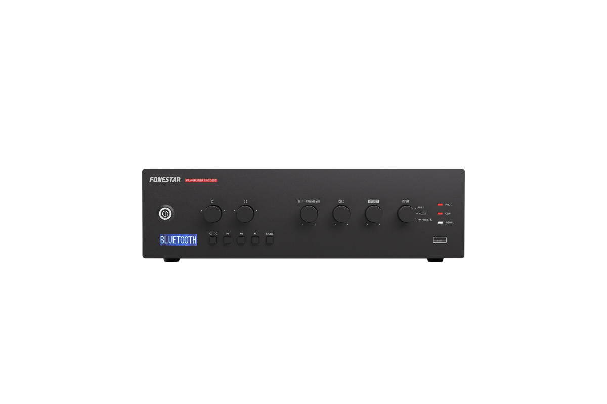 PROX-60Z — це багатозонний підсилювач потужності для систем оповіщення та фонового озвучування з Bluetooth, USB та FM-плеєром. Підходить для комерційних, освітніх та спортивних об’єктів. Підсилювач поєднує в одному корпусі підсилювач, мікшер, програвач та мікрофонні/aux-входи.