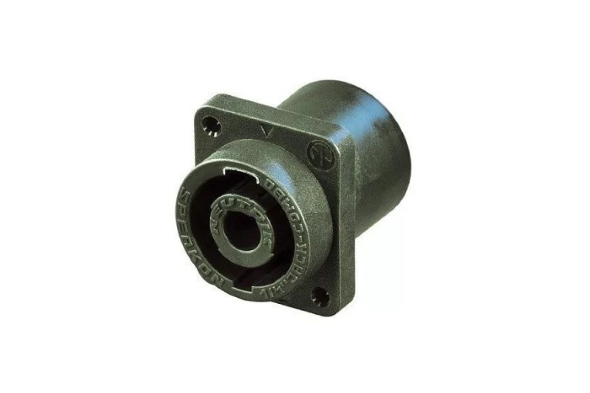 Панельний комбінований роз'єм SPEAKON + Jack 6.3 (моно), вертикальна установка PCB, надійна поворотна система блокування Quick Lock, 2-х контактний, фланець D-типу, самонарізні отвори, установка та отвори кріплення на панель як у NL4MD-V, паластиковий корпус, контакти – покриття срібло. Сумісний з усіма кабельними роз'ємами SPEAKON 2-х та 4-х контактними.