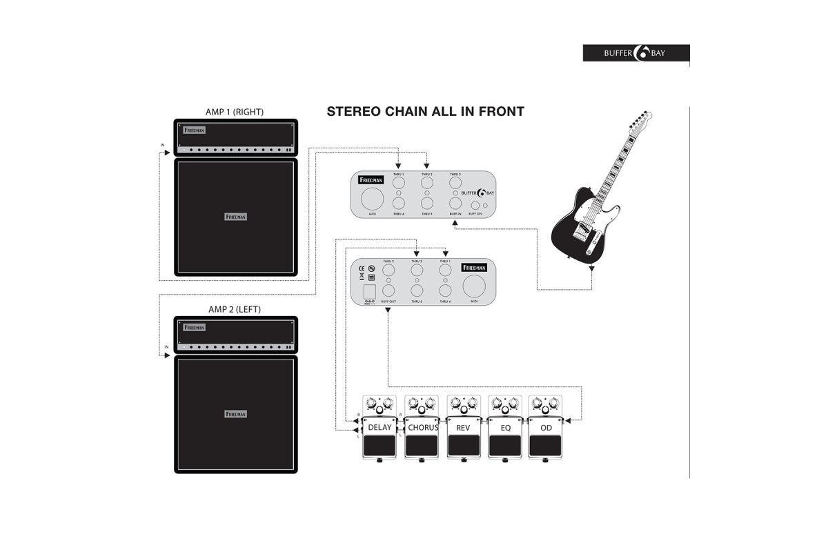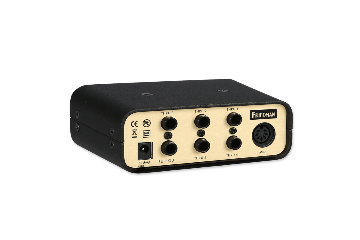 Буфер / патчбей педаль, виключно прозоре та музичне звучання, 5 х 1/4 TRS наскрізних входів-виходів, буферізірованний вхід 1/4 TS (з перемикачем On / Off), 7 піновий MIDI наскрізний вхід-вихід, Живлення 9В мінус в центрі (адаптер не входить в комплект).