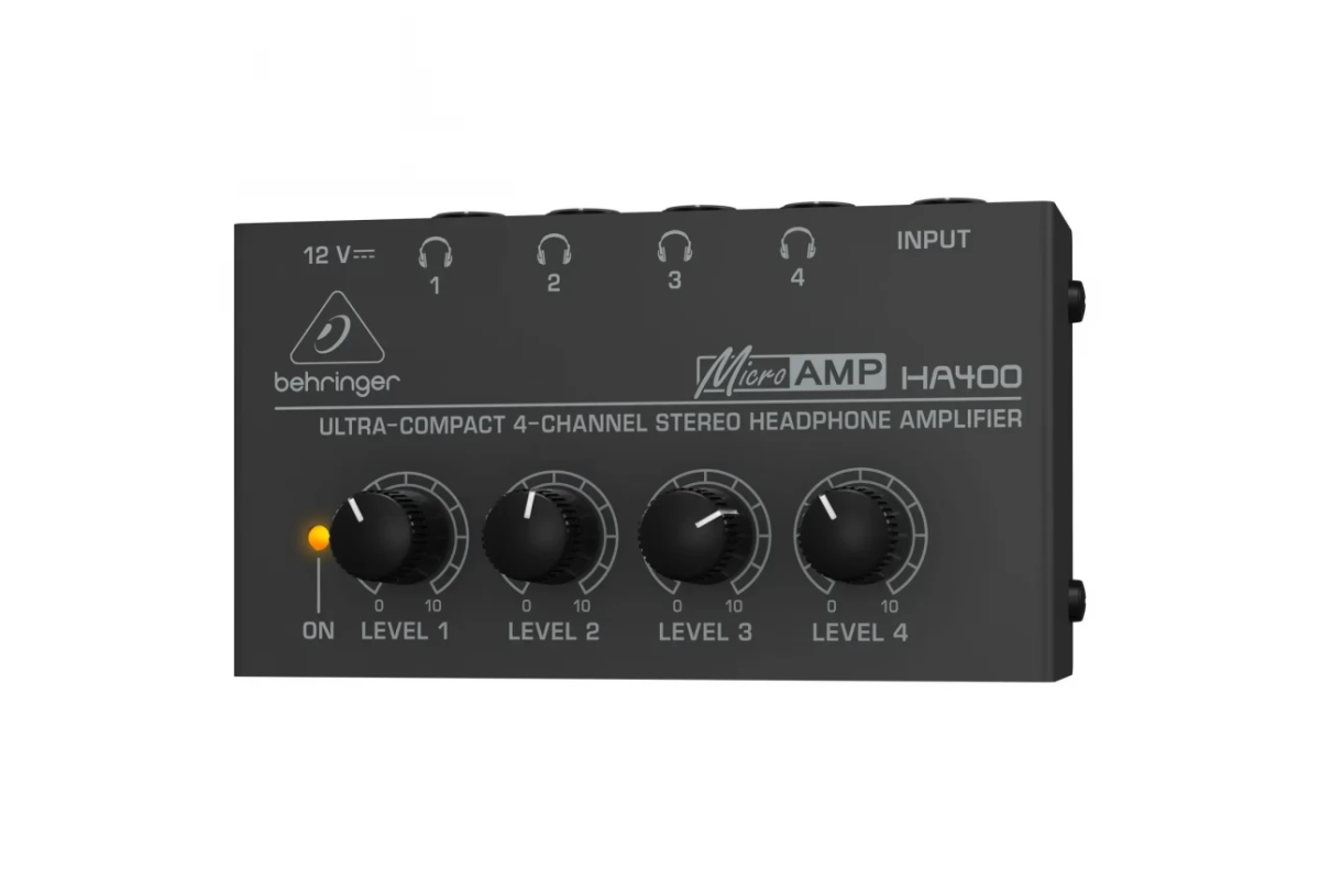 Цей суперкомпактний стереофонічний підсилювач-розподільник працює практично з усіма типами навушників, причому з чотирма одночасно. При записи в студії або репетируючи вдома, Ви зможете направити основний мікс чотирьом музикантам, індивідуально встановивши рівень гучності для кожного. HA400 має 4 надпотужних підсилювача, що зберігають високу якість звуку навіть при максимальній гучності. Чудову звукопередачу забезпечують ті ж надмалошумні операційні підсилювачі 4580, які використовуються в аналогічних рекових пристроях. У комплект поставки також входить 12-вольтний мережевий адаптер. Будучи активним пристроєм дистрибуції стереосигнала, HA400 стане практичним доповненням Вашому студійного устаткування.