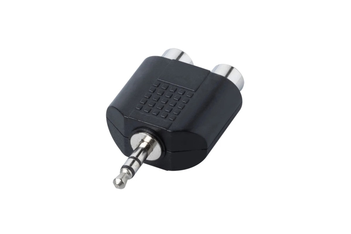 Перехідник: 2 х RCA тюльпана "мама" - стерео міні-джек "тато" (діаметр 3,5 мм).