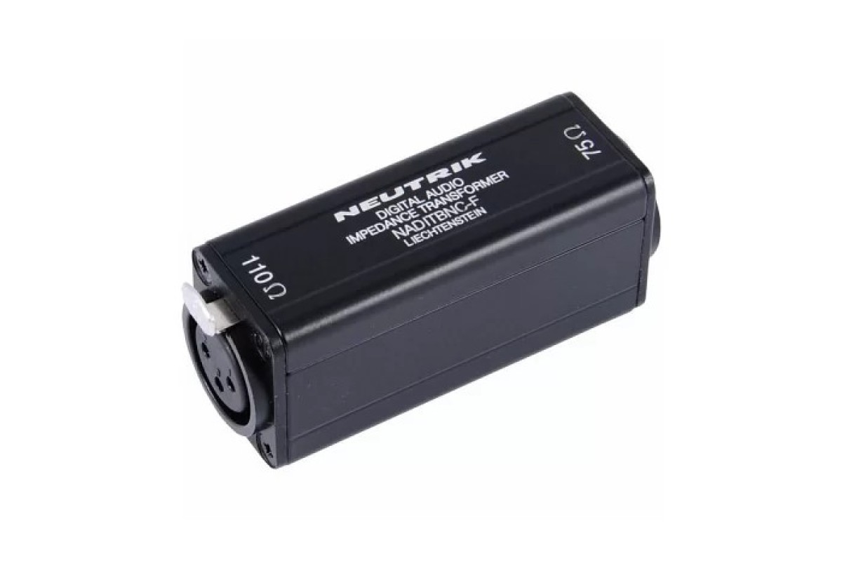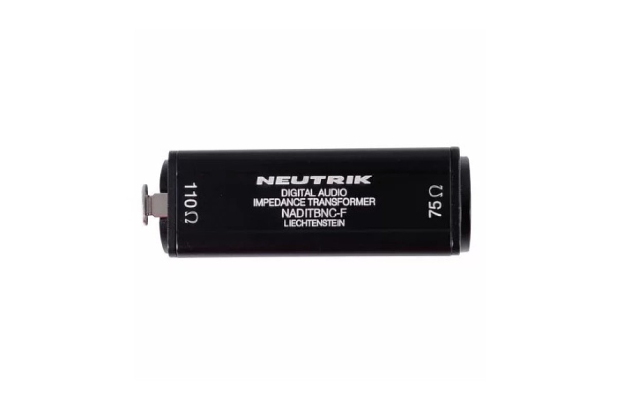 Neutrik NADIT BNC-F – це адаптер із гніздами XLR 110 Ом Female-BNC 75 Ом Female та узгоджуючий трансформатор опору для AES/EBU одночасно. Максимальна напруга становить 5, а гранична потужність дорівнює 250 мВт. Це досить простий та зручний у використанні модуль пасивного типу. Частотний діапазон дорівнює 0,1-6 МГц.