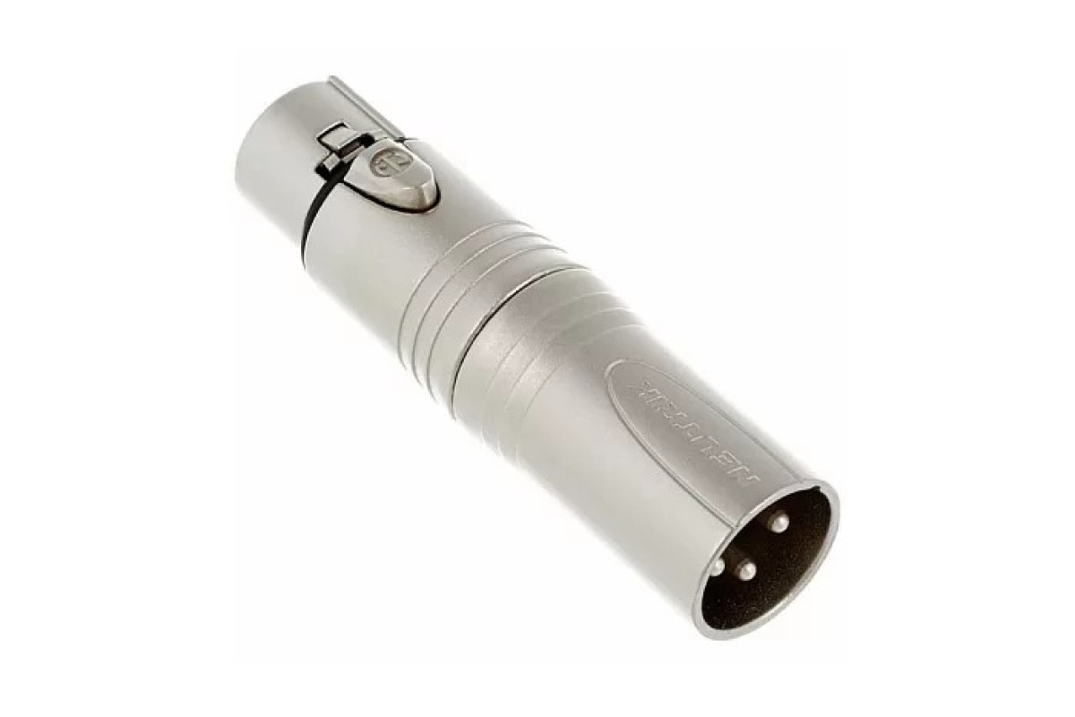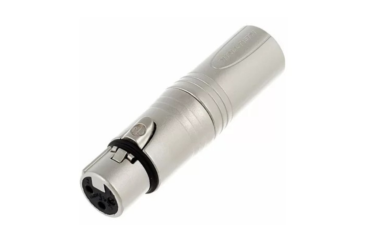 Neutrik NA3FM – Професійний адаптер-перехідник 3-х контактний XLR мама - 3-х контактний XLR тато. Адаптер може використовуватися для перетворення роз'єму або для збільшення довжини кабелю. Має міцний литий корпус для більшої надійності з'єднання.