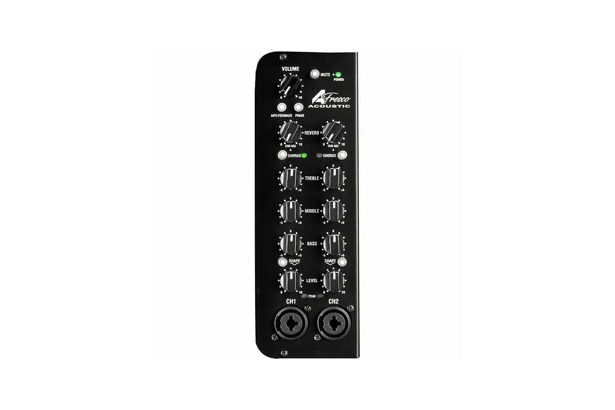 Комбопідсилювач A-FRESCO має два повністю незалежні канали, кожен з яких може обробляти сигнали або з XLR входів, або з Jack 6,3 мм входів. Вбудований трисмуговий еквалайзер має 4 цифрові передустановки EQ та спеціальну ручку Shape, для миттєвої оптимізації тембру налаштуванням однією кнопкою. Ви можете підключати мікрофон і Ваш інструмент, два різні акустичні інструменти або навіть кілька окремих мікрофонів від одного й того самого інструменту. Крім того гніздо Aux стане Вам у нагоді для живих виступів.