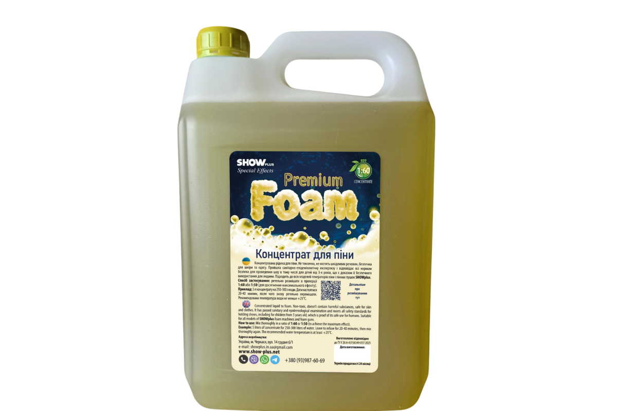 Концентрат 1:60 для створення стійкої та густої піні. Виготовлений з європейської сировини, якісний та безпечний для здоров'я! Час осідання піні 4 години.
