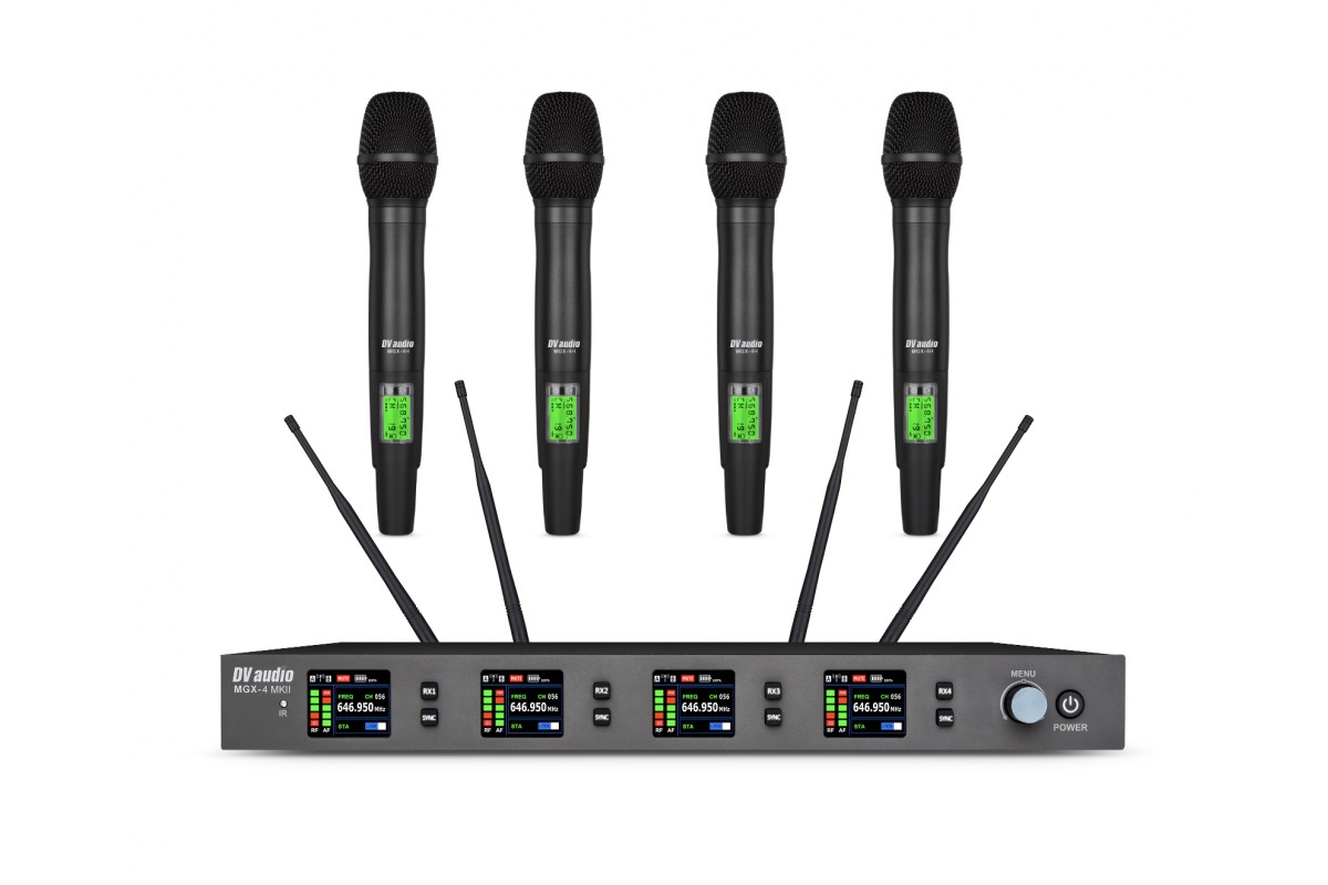 Радіосистема DV audio MGX-44H MKII – оновлена система яка прийшла на зміну звичайній MGX-44H! Високочастотна UHF радіосистема в комплекті чотири ручних мікрофони в металевому корпусі. Проста у використанні і забезпечує просто чудове звучання.