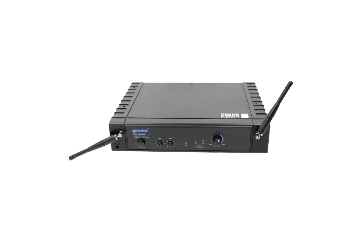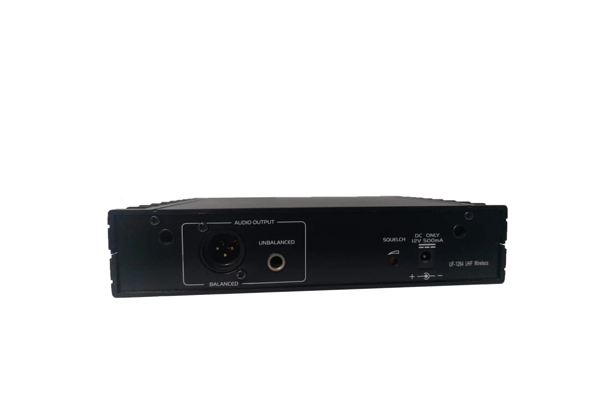 UF-1264M це професійна радіосистема, розроблена компанією Gemini. Система є 2-х антеною і працює в діапазоні UHF. Вона складається з передавача і одного ручного мікрофона, радіус дії якого становить 100 метрів. Система забезпечена світлодіодними індикаторами рівня сигналу. Батареї вистачає на 8 10 годин безперервної роботи.
