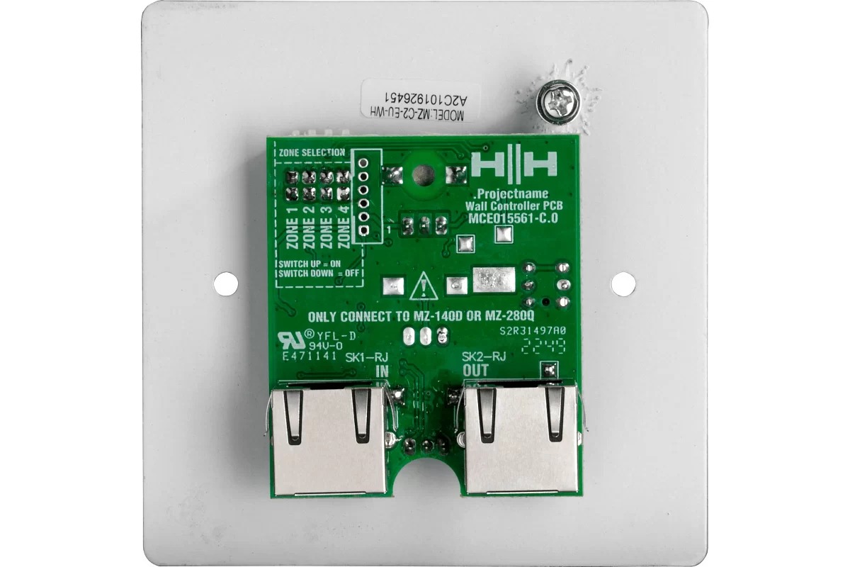 MZ-C2 – це настінний регулятор гучності та селектор джерела для підсилювачів-розподільників зон серії MZ. MZ-C2 дозволяє установщику вибирати, яким зонам призначено регулятор гучності, а також має зручну функцію відключення звуку зі швидким підсвічуванням, щоб уникнути переміщення регулятора гучності. Перемикач джерела, що розташований на передній панелі, дозволяє користувачеві вибирати, який вхід направляється в вибрану зону/зони. Підключається стандартним кабелем Cat5, установка виконується швидко та легко. MZ-C2-EU-BK має матово-чорний колір.