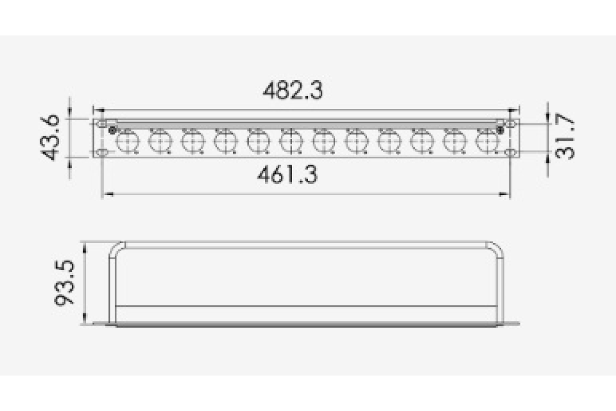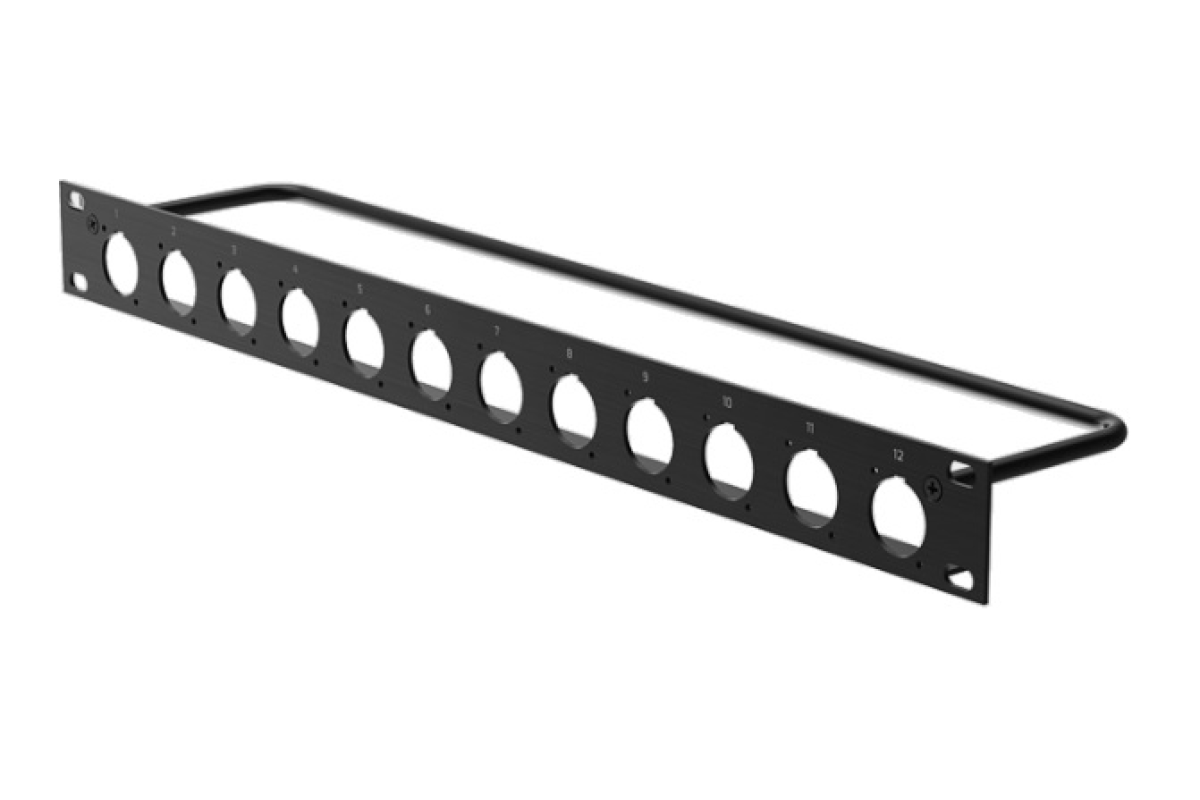 Професійна алюмінієва панель для монтажу в 19-дюймову стійку, 1U, 12 отворів для роз'ємів типу D