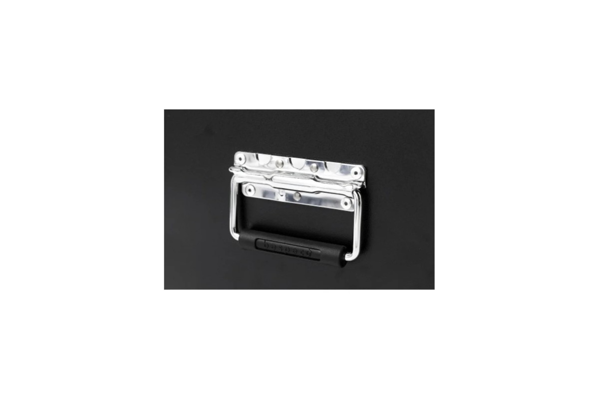 Кейс оснащений сталевими замками, які закриваються на ключ. Металеві ручки з пружинним механізмом і гумовим покриттям забезпечують зручне транспортування кейса, а гумові ніжки додають стійкості.