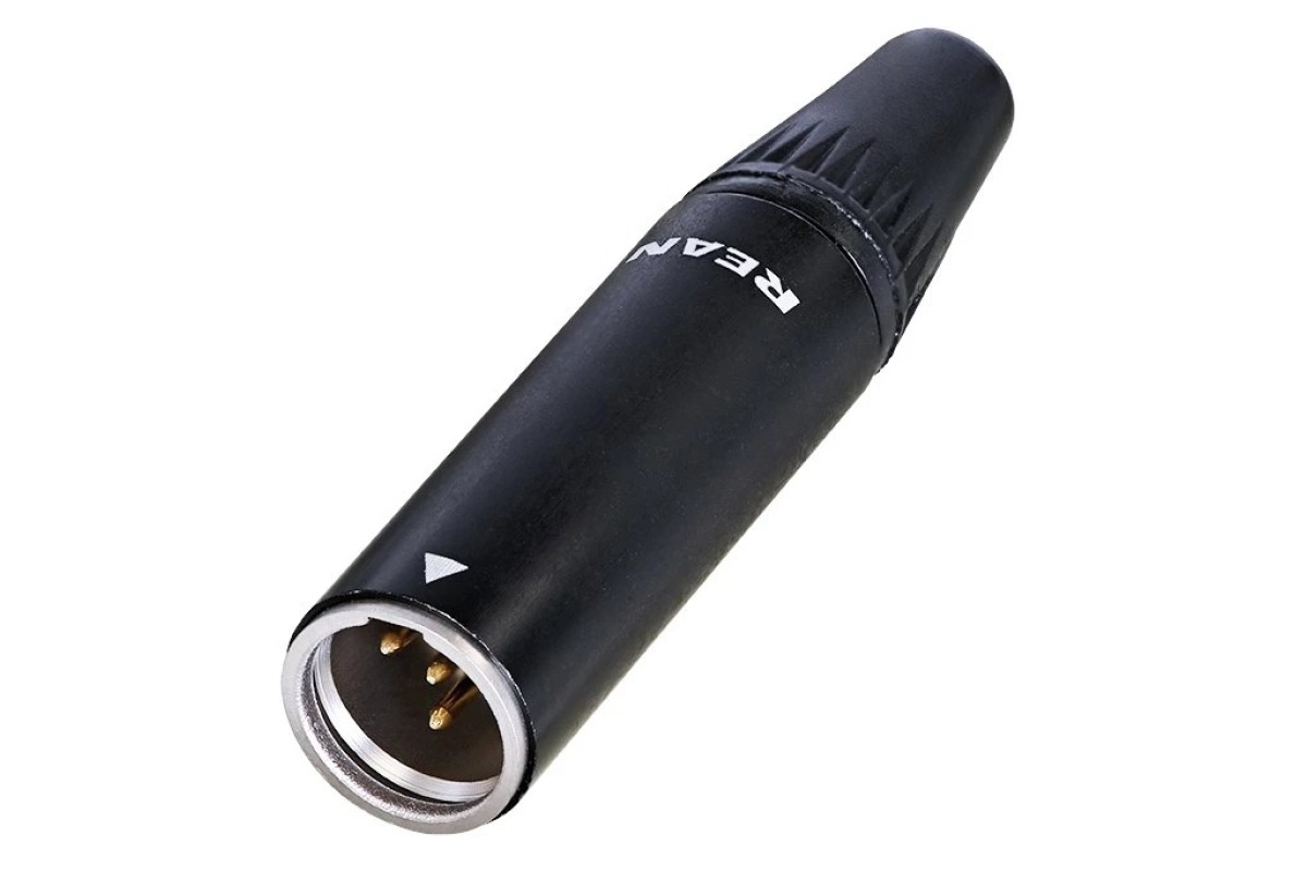 Mini-XLR (TINY) кабельний роз'єм "тато" 4-контактний, чорний металевий корпус, позолочені контакти, пластиковий пакет.