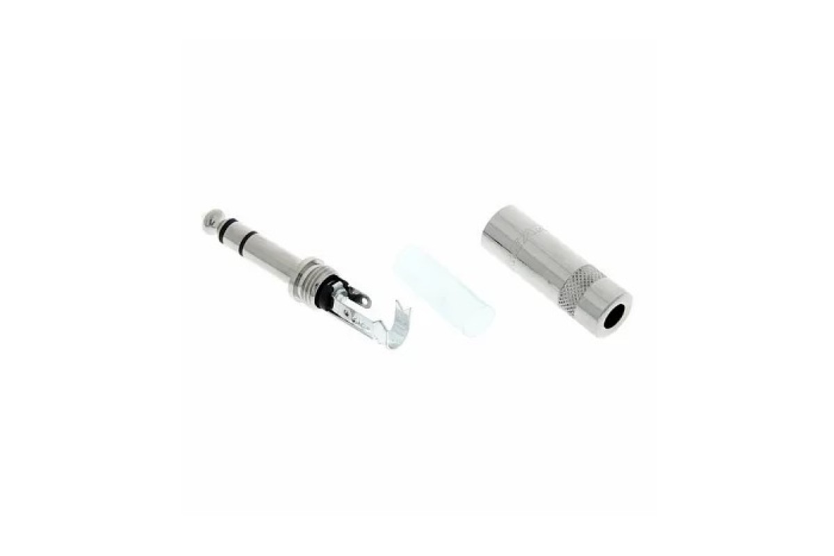 Кабельний роз'єм 1/4" Jack, 3-х контактний (стерео), металевий нікельований корпус, контакти - покриття нікель, під паяння, на кабель діаметром до 6.0 мм.