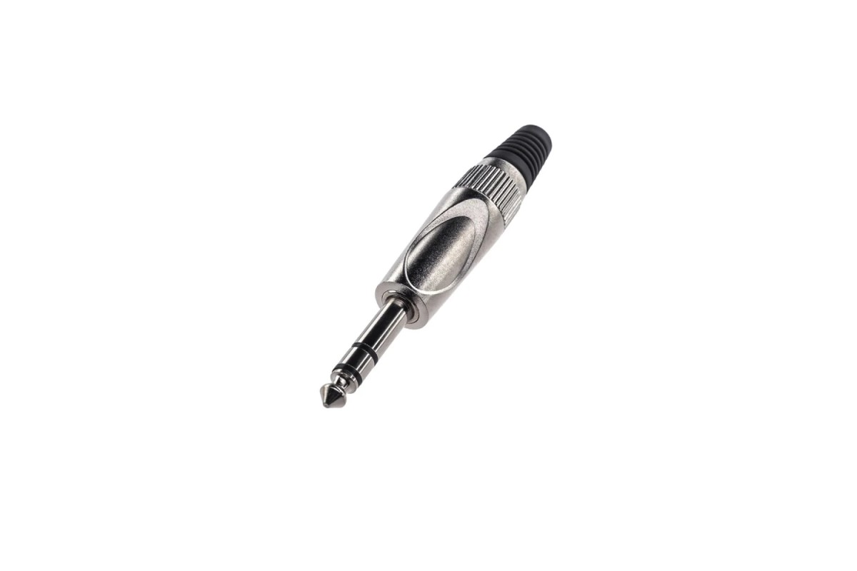 Maximum Acoustics JS65 – 6,3 мм (1/4") стерео роз'єм з посрібленими контактами, металевий корпус і гумовий тримач кабеля. Колір – металік (корпус) / чорний (тримач кабеля).