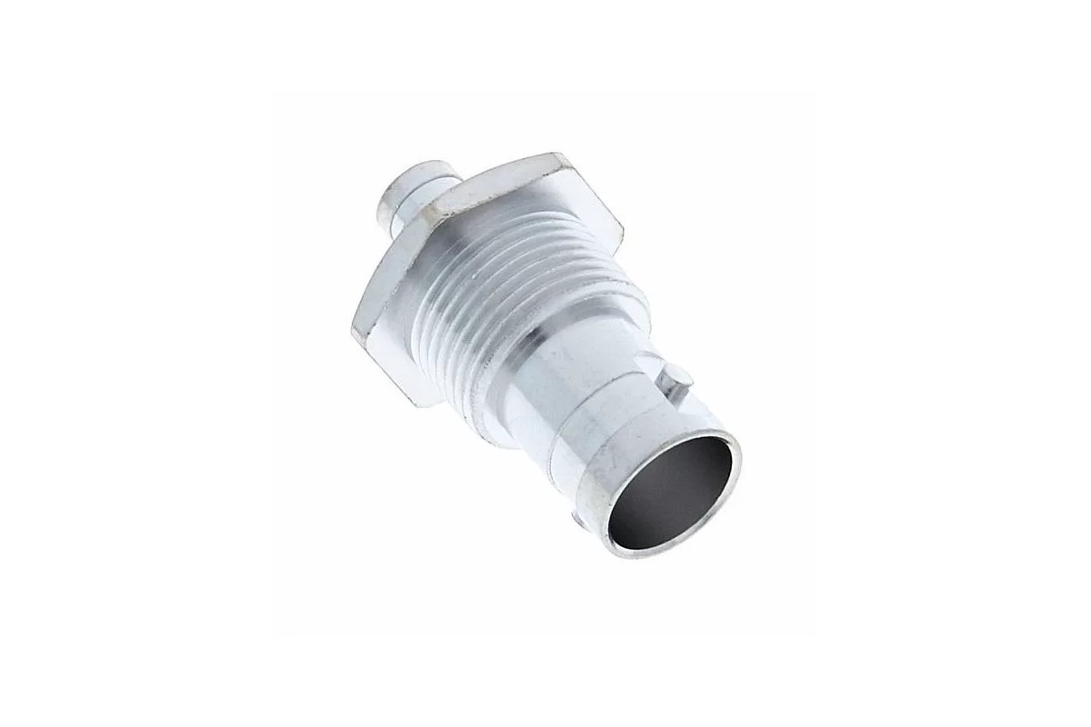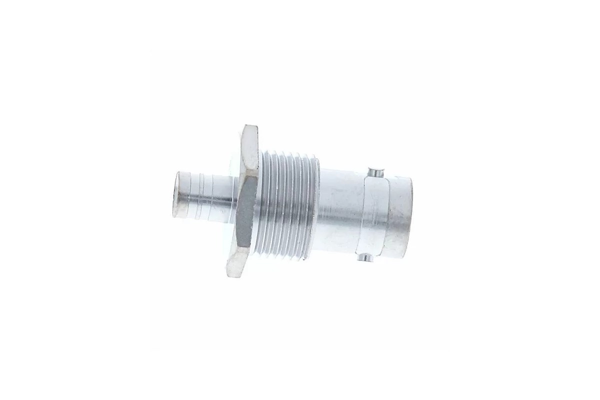 Панельний / кабельний роз'єм BNC, для аналогових та цифрових відеосигналів HD-SDI, <гніздо/мама>, із заземленням, кріплення на панель - гайка, корпус - латунь, ізолятор (PTFE), центральний контакт - покриття золото, під обтиск, кабель діаметром 6.3 мм., 75 Ом. Структура: 1.6/6.47 мм. (пін/екран).