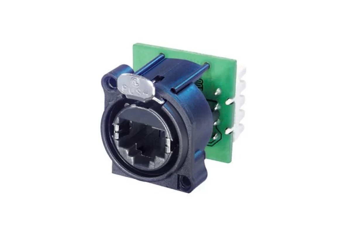 Панельний роз'єм RJ45 EtherCON <гніздо/мама>, CAT 5е, А-серія, фланець А-типу, відповідає класу D, пластиковий корпус, фіксація замку за технологією "Latch lock", контакти - покриття золото, під затискач дроту IDC. Максимальна товщина панелі 3 мм. Кріпильні гвинти у комплекті.