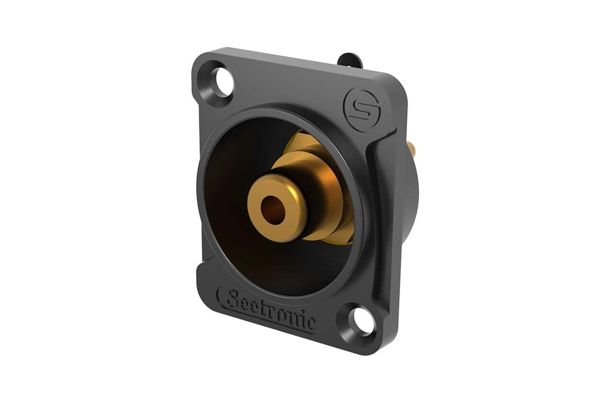 Роз'єм RCA, чорний металевий корпус, позолочені контакти.