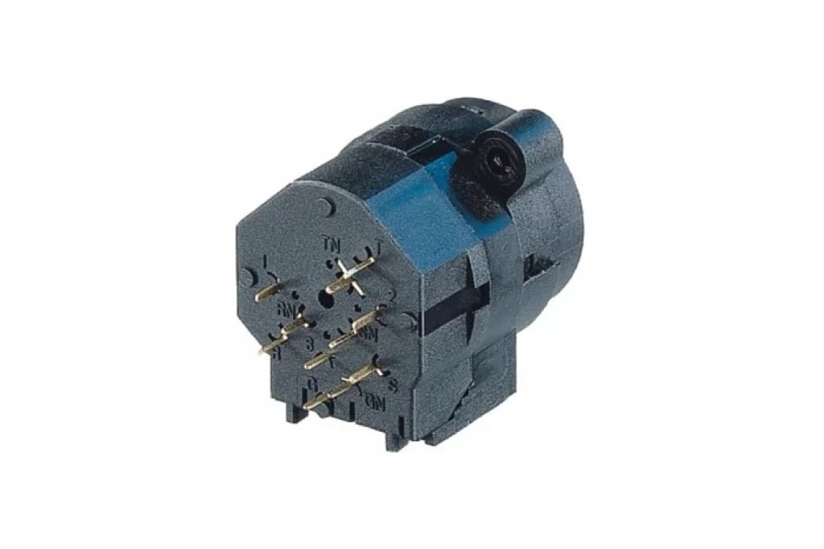 Панельний комбінований роз'єм XLR3 + Jack 6.3 (стерео) з стерео джеком, що перемикається, вертикальна установка PCB, утримуюча пружина, 3-х контактний, фланець S-типу (внутрішня установка), пластиковий корпус, контакти - покриття золото. Максимальна товщина панелі 7 мм. 0.27”.