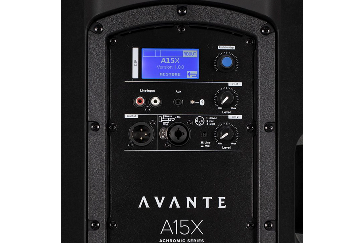 Avante A15X – профессиональная активная двухполосная акустическая система серии Achromic с Bluetooth 5.0, 15" вуфером и 1.35" твиттером, предназначена для больших событий и концертов. Система обеспечивает пиковую мощность 1200 Вт и номинальную 400 Вт с частотным диапазоном 45 Гц – 20 кГц и пиковым звуковым давлением 124 дБ. Avante A15X оснащена цифровым DSP, жидкокристаллическим дисплеем, пресетами, совместимостью с приложением Achromic X для iOS и Bluetooth подключением для потоковой передачи музыки. Легкий и прочный корпус из полипропилена, стальная решетка и три точки крепления для подвеса делают систему универсальной для концертов, мобильных мероприятий, клубов и инсталляций.