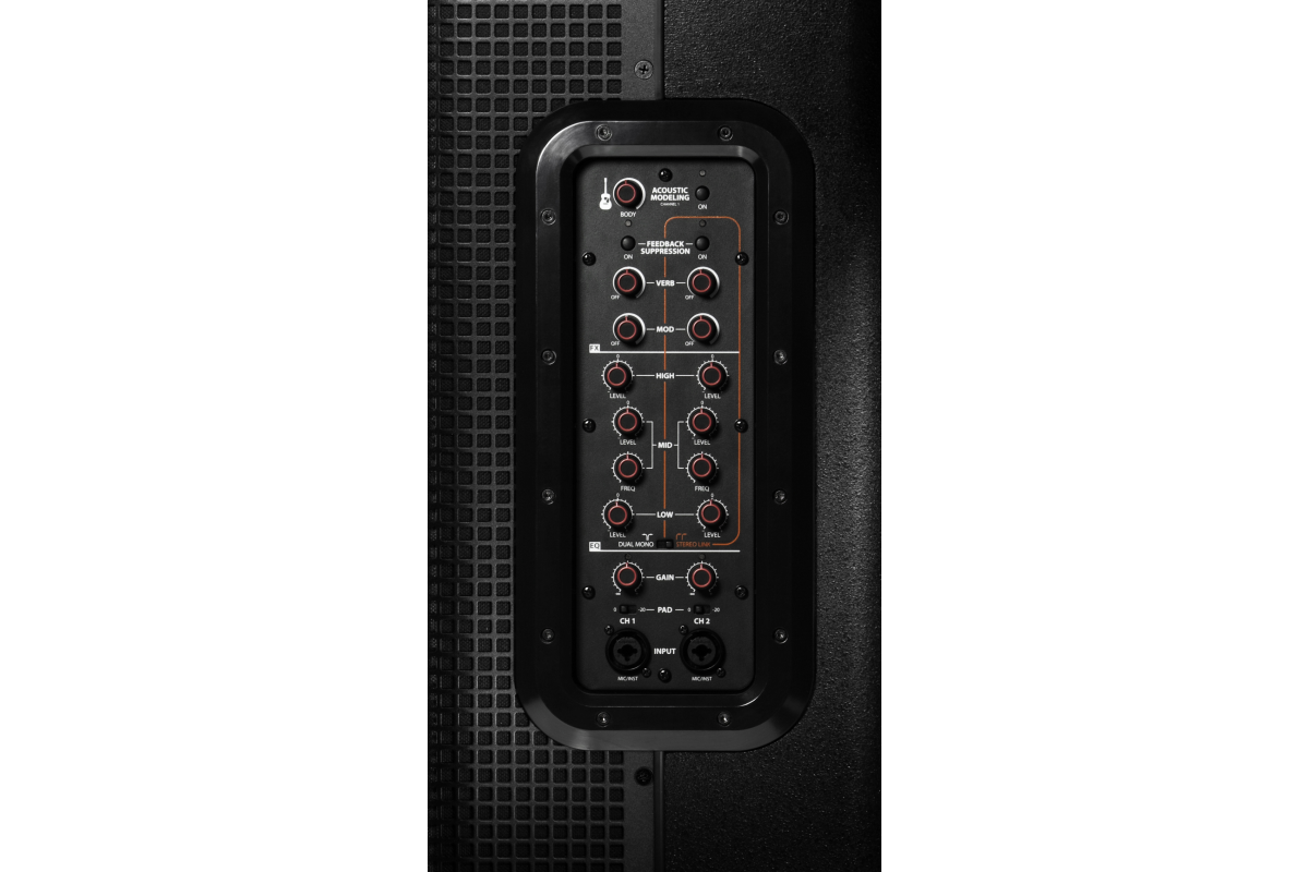 управляющих на боковой панели: Gain, PAD, 3-х полосный эквалайзер с параметрической серединой, Mod, Reverb, Feedback Supression (On/Off/Mode), Dual mono/Stereo Link, Acoustic modeling (on/off)
